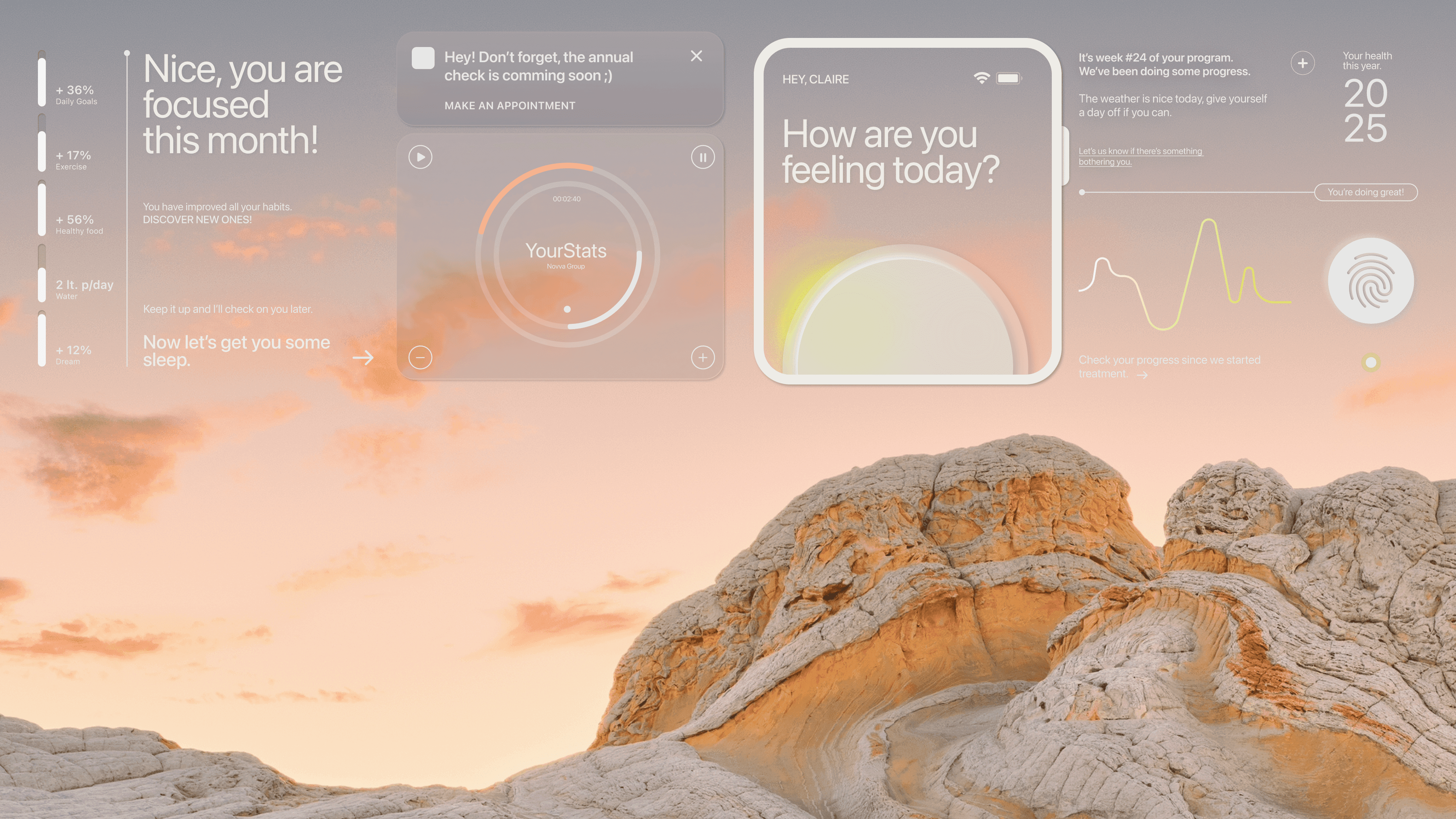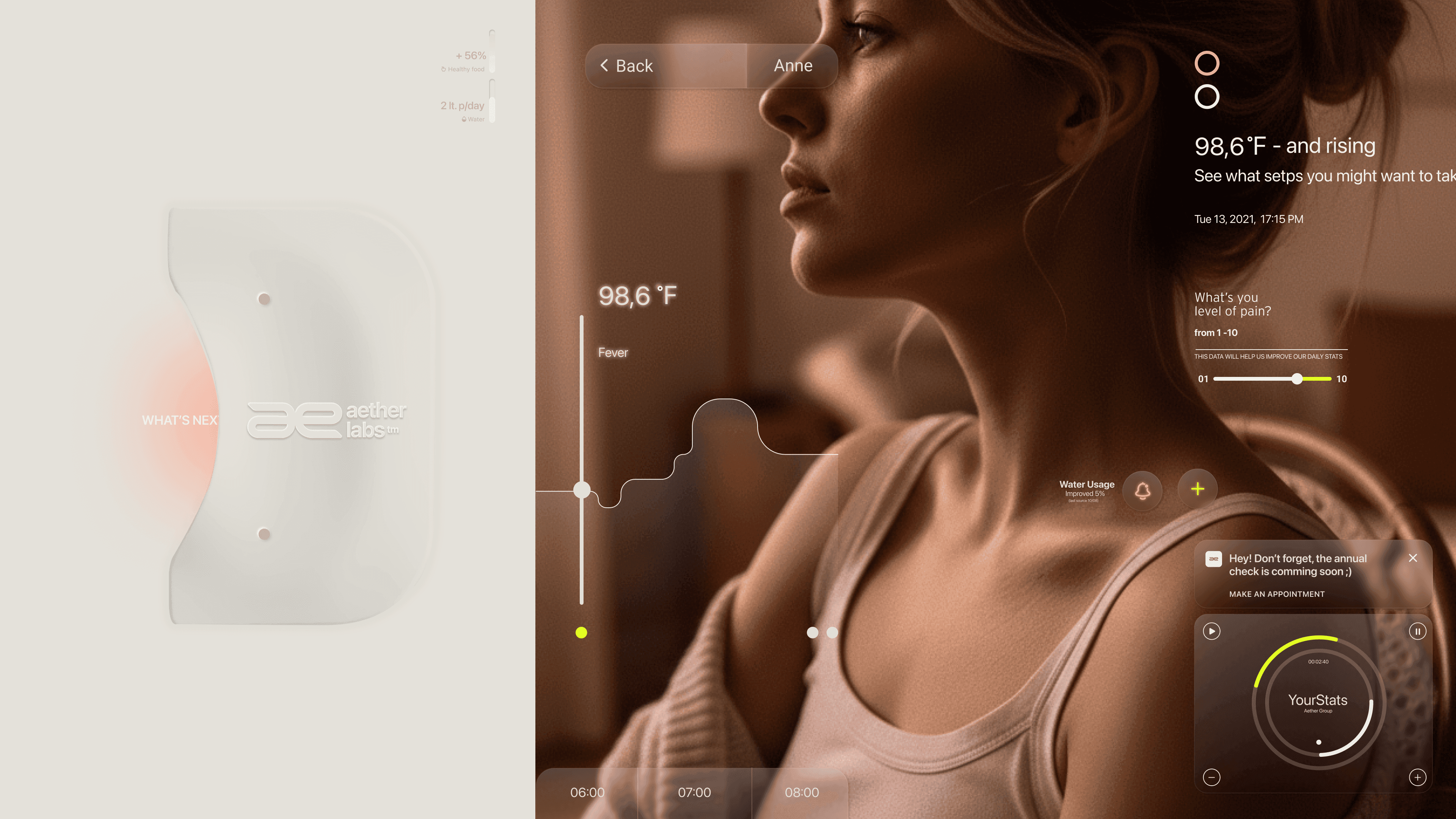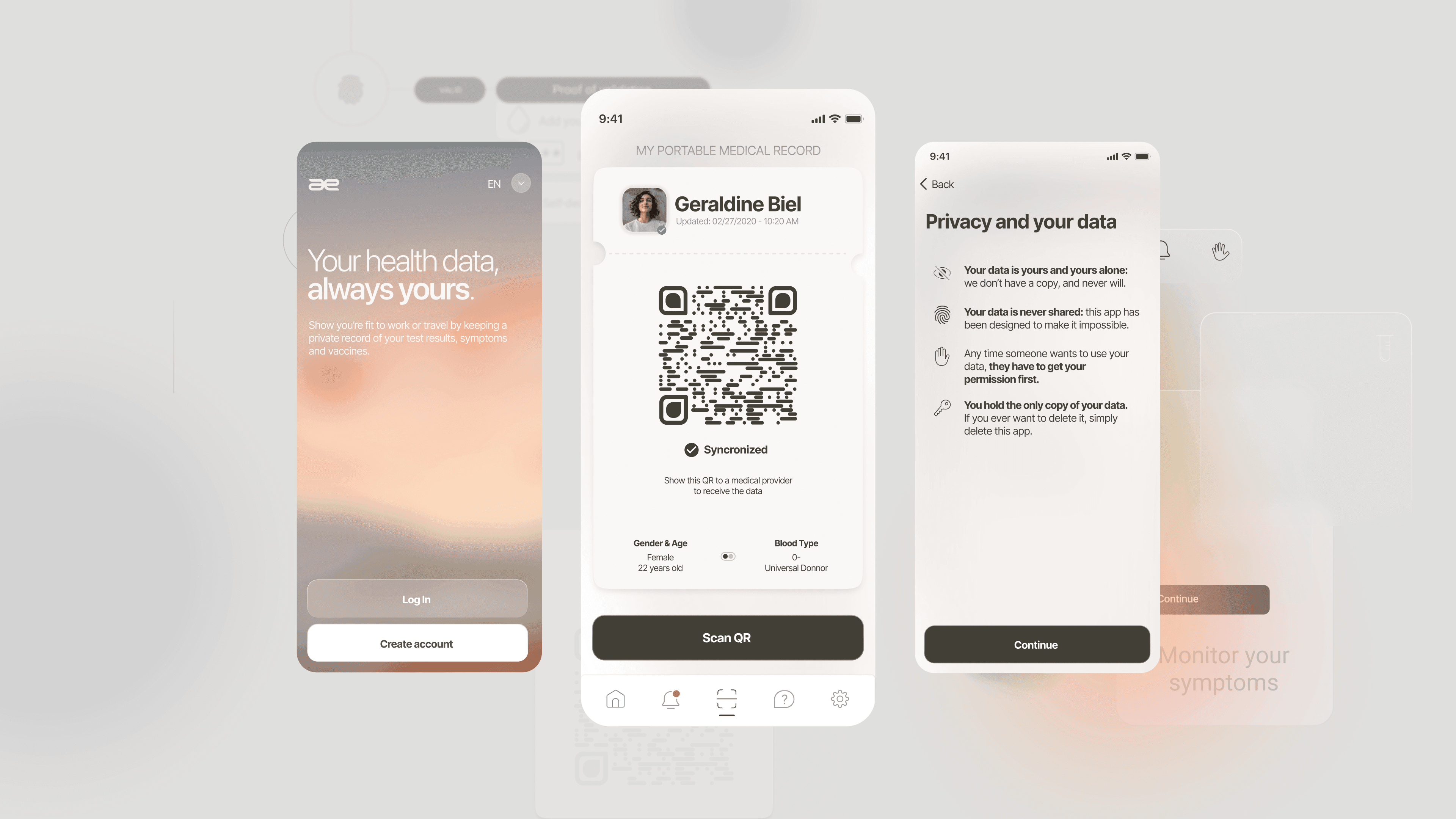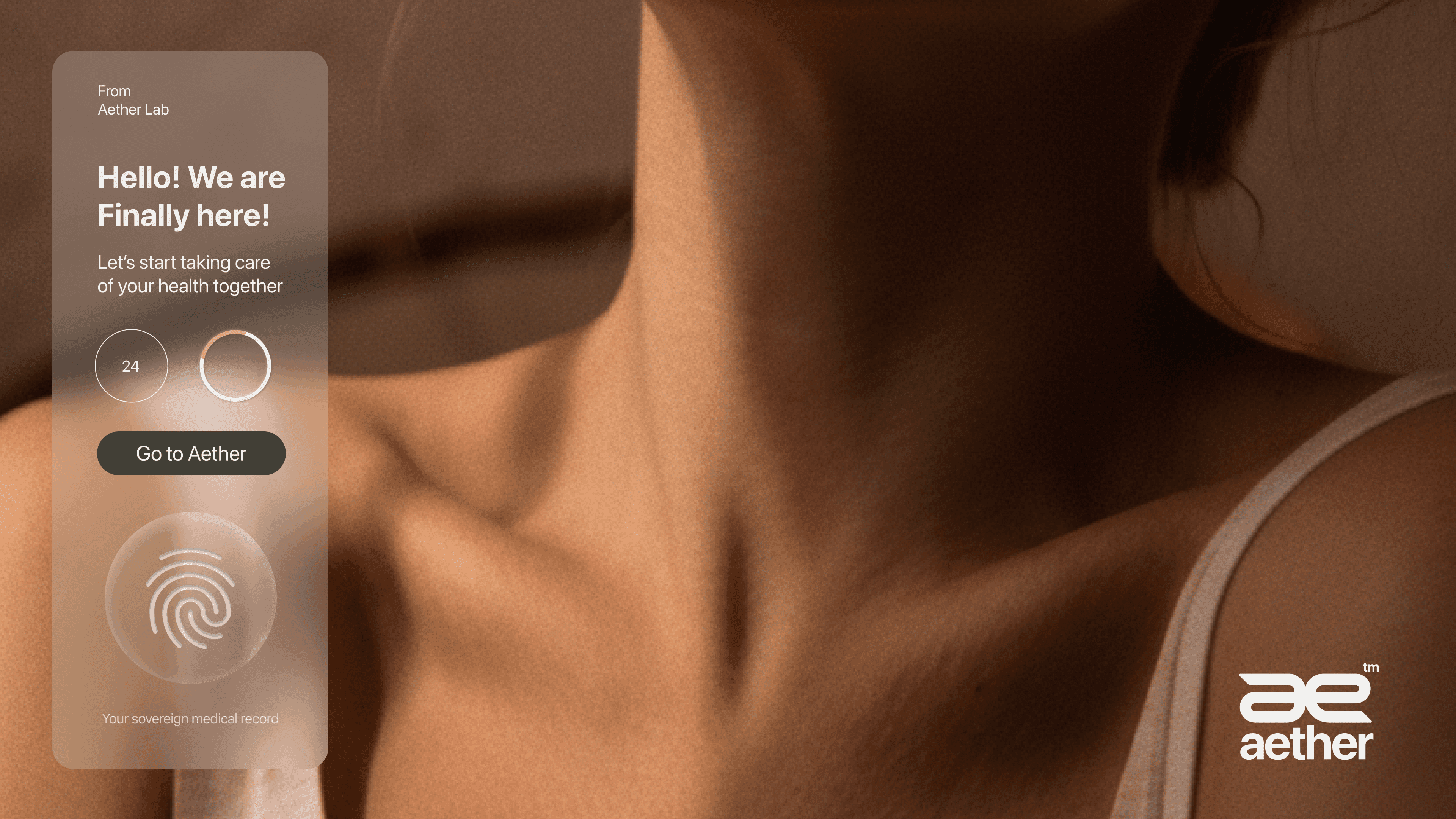A digital health project that combines self-sovereign identity with medical records, giving users control over their data and wellbeing. Initially conceived during the COVID era, the project evolved toward a broader vision of personal health. We helped guide this shift by developing a new brand identity, app mockups, and general communication that positioned Aether into the wellness space.